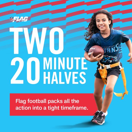 Flag football games feature short, two-minute halves and are generally designed for fast-paced, high-intensity formats.